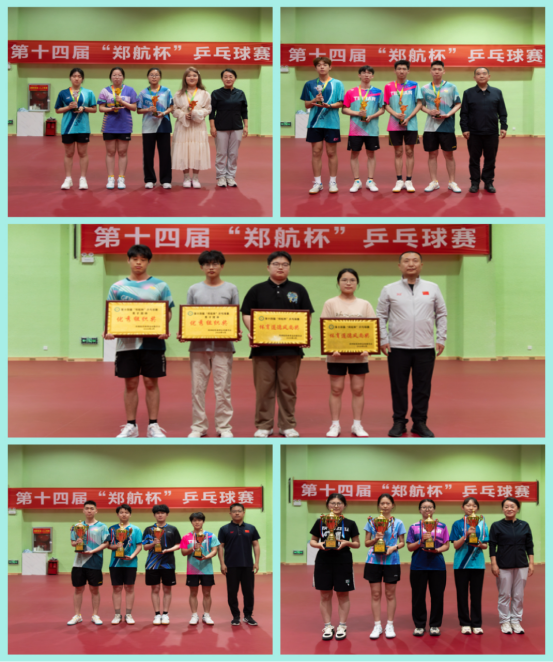 校体育运动委员会主办,体育部、校大学生乒乓球协会承办的第十四届“郑航杯”乒乓球赛于4月25日在校乒乓球馆圆满落幕。体育部主任贾钧、管理工程学院党委书记刘儒、机械工程学院党委书记罗昆、蓝天书院直属党支部书记许晓丽。出席本次比赛闭幕式并为获奖单位及个人颁奖。